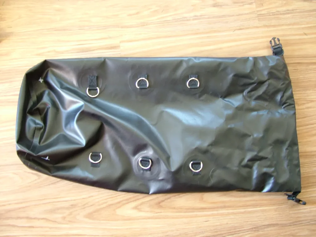 První problém vodáckých vaků je, že nemají nic, čím by se daly zabezpečit na motorce a tak se mohou vysmeknout a ztratit. To už se mi také stalo. S vodáckými vaky jsem zkoušel jezdit už dlouho.